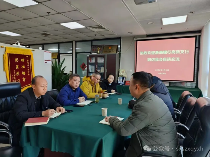 1月7日,浙商银行高新支行副行长杨帅、小企业部总经理吴豪一行3人到访陕西省中小企业协会,协会党支部书记、秘书长李新华带领协会相关负责人一并座谈交流。